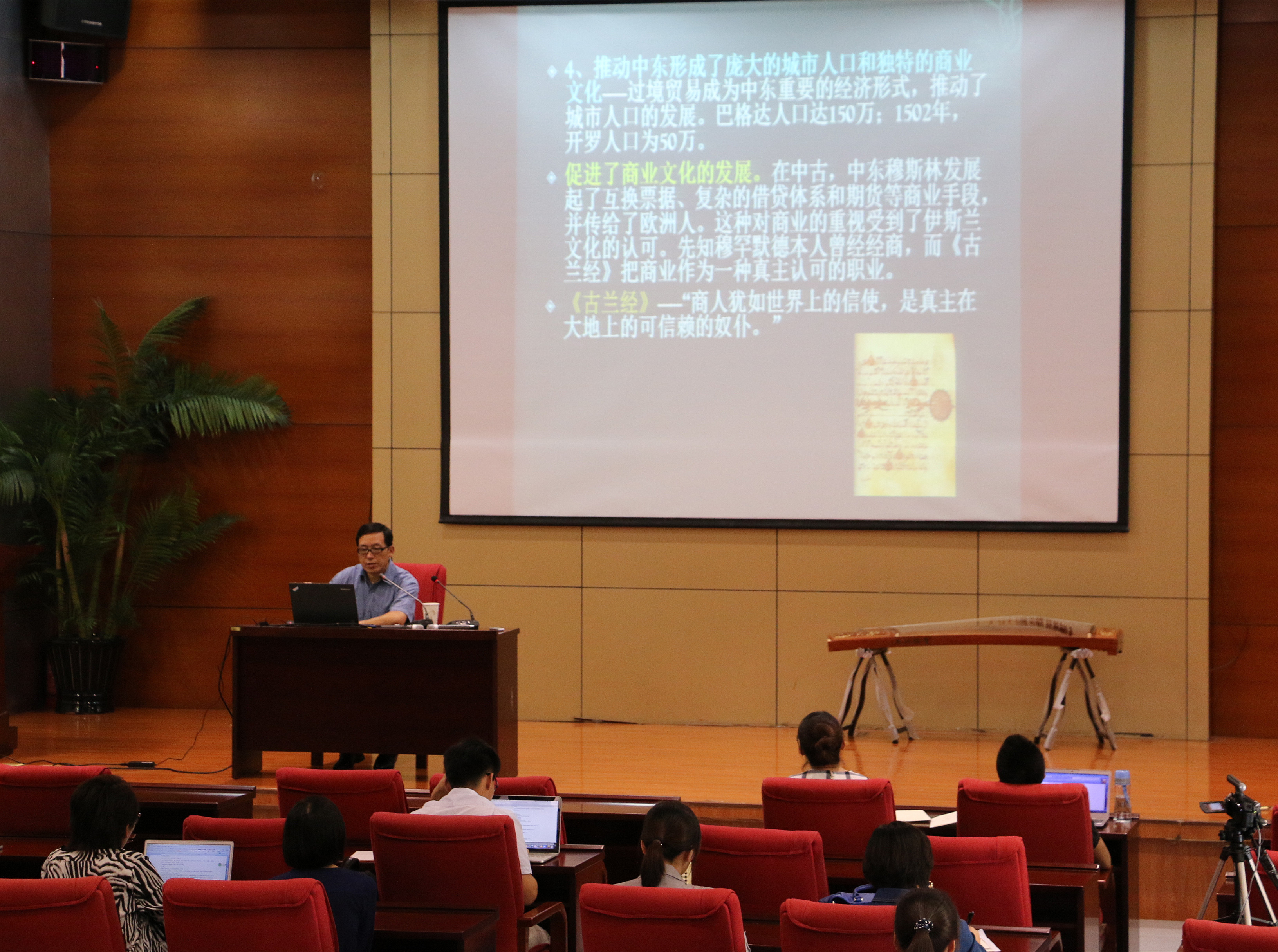 邀请,西北大学中东研究所所长黄民兴教授于9月12日-16日间前来讲学,面向学院师生做了“现代中东国家的形成及其特征(上、下)”、“当前中国局势与中东的‘一带一路’战略”等三场学术讲座,系统梳理了中东各国政治、经济、文化、宗教的演变与发展历程,并对不同国家的对华关系、在“一带一路”战略中所处的位置进行了论述与评析,使在场师生对中东地区的历史与现实有了全新的理解与认识。