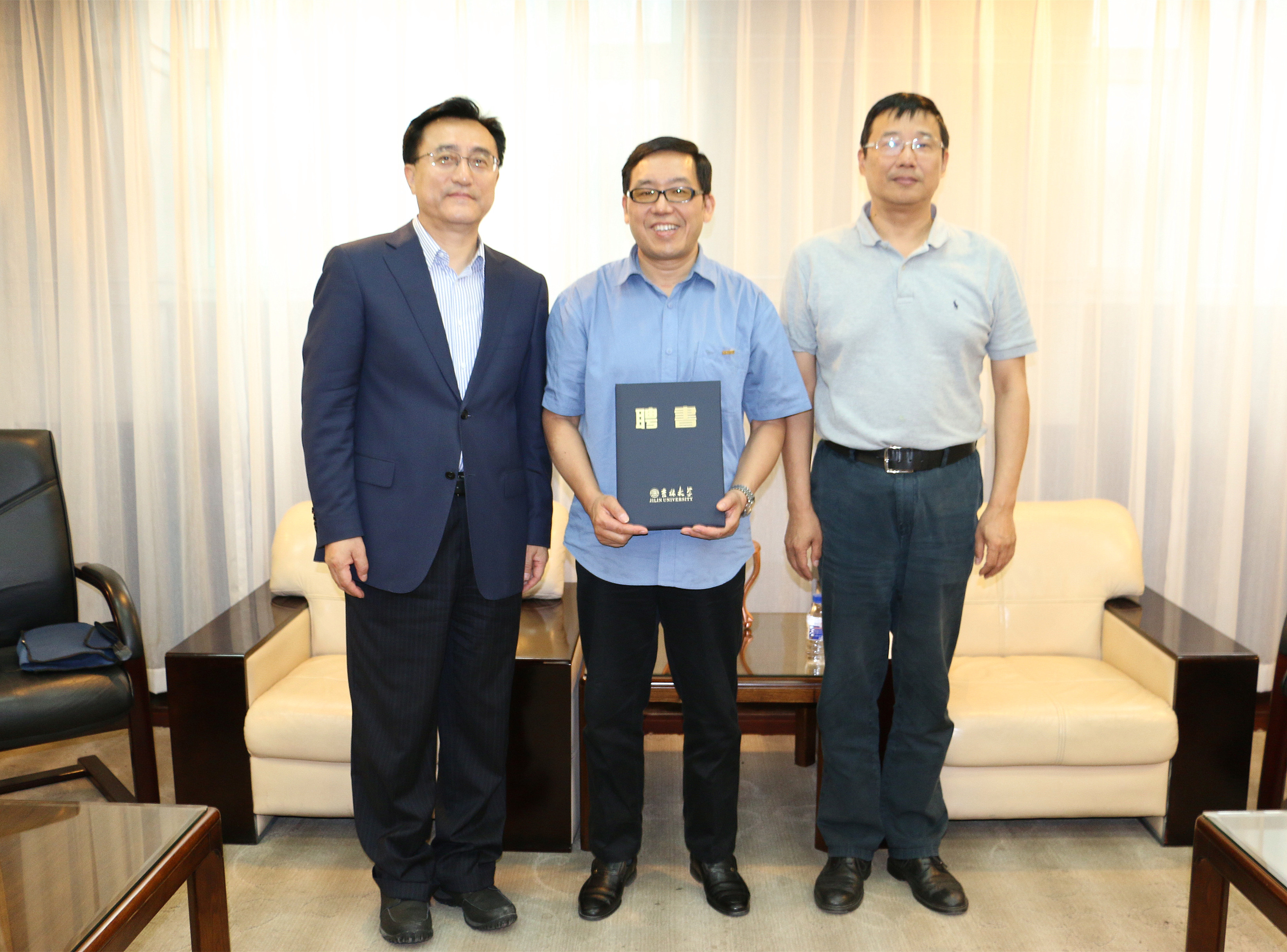 客座教授聘书,并为其佩戴校徽。黄民兴对受聘为日本av