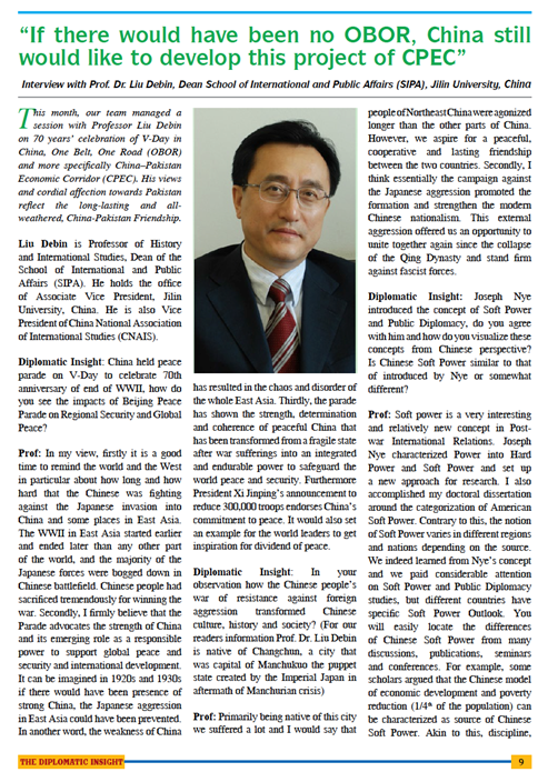 2015年9月5日,应巴基斯坦《外交视野》杂志的约请,刘德斌院长接受该杂志的采访请求,回答了关于中国纪念抗日战争暨世界反法西斯战争胜利七十周年大阅兵、中国软实力、中国的“一带一路”战略、中国的发展经验、中巴关系以及中巴经济走廊的前景等当下热门问题。采访全文刊登在该杂志今年第九期“北京大阅兵&中华人民共和国成立66周年”特刊的显要位置。本期杂志同时收录了日本av