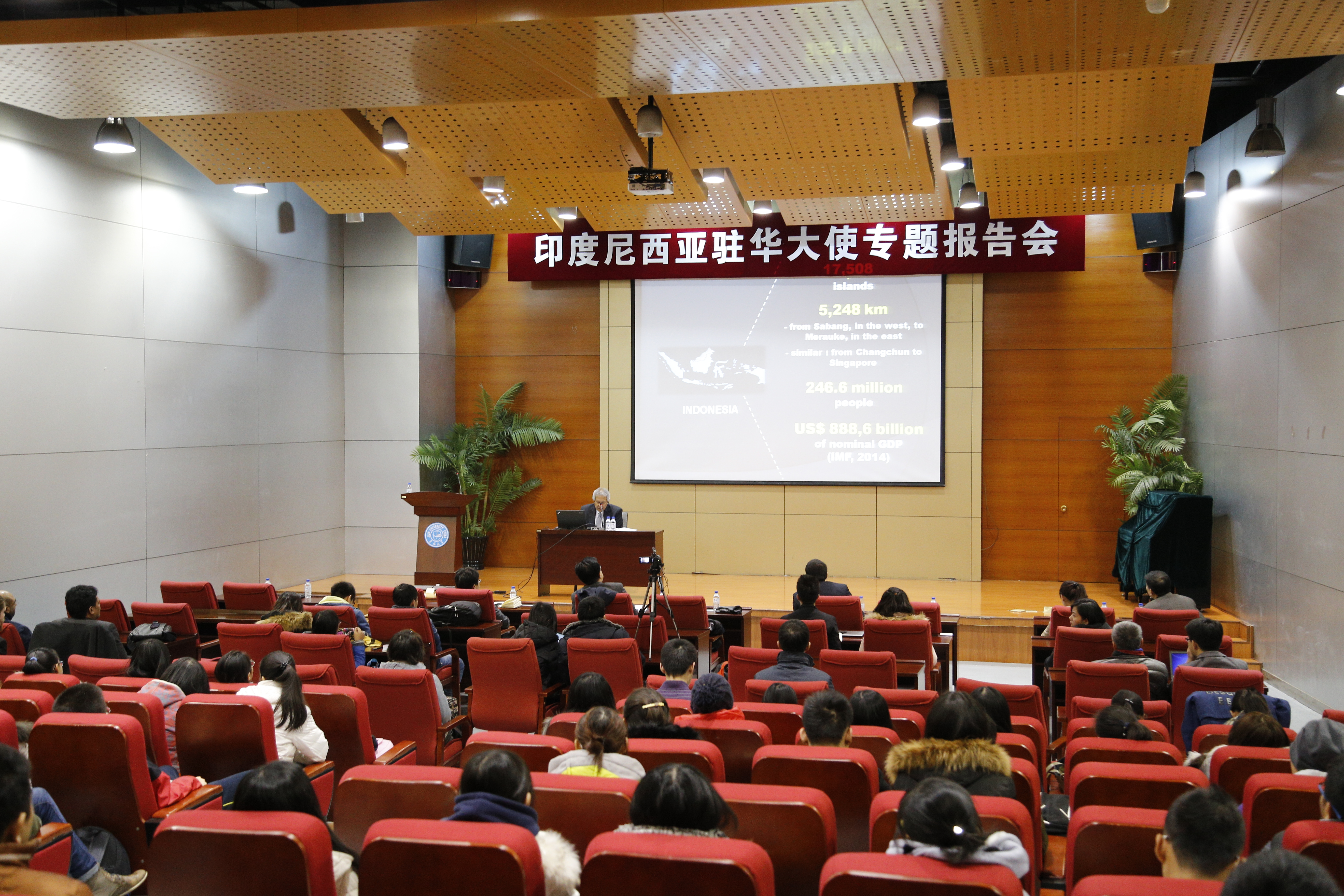 随后,苏更•拉哈尔佐大使为我校师生做了题为《印尼与中国关系:两国六十五年的外交与未来的合作潜力》的专题报告。在报告中,他详细介绍了中印两国外交的历史和现状,并对两国关系发展做出了积极的展望。报告结束后,大使先生与现场观众进行了长时间的互动。来自日本av