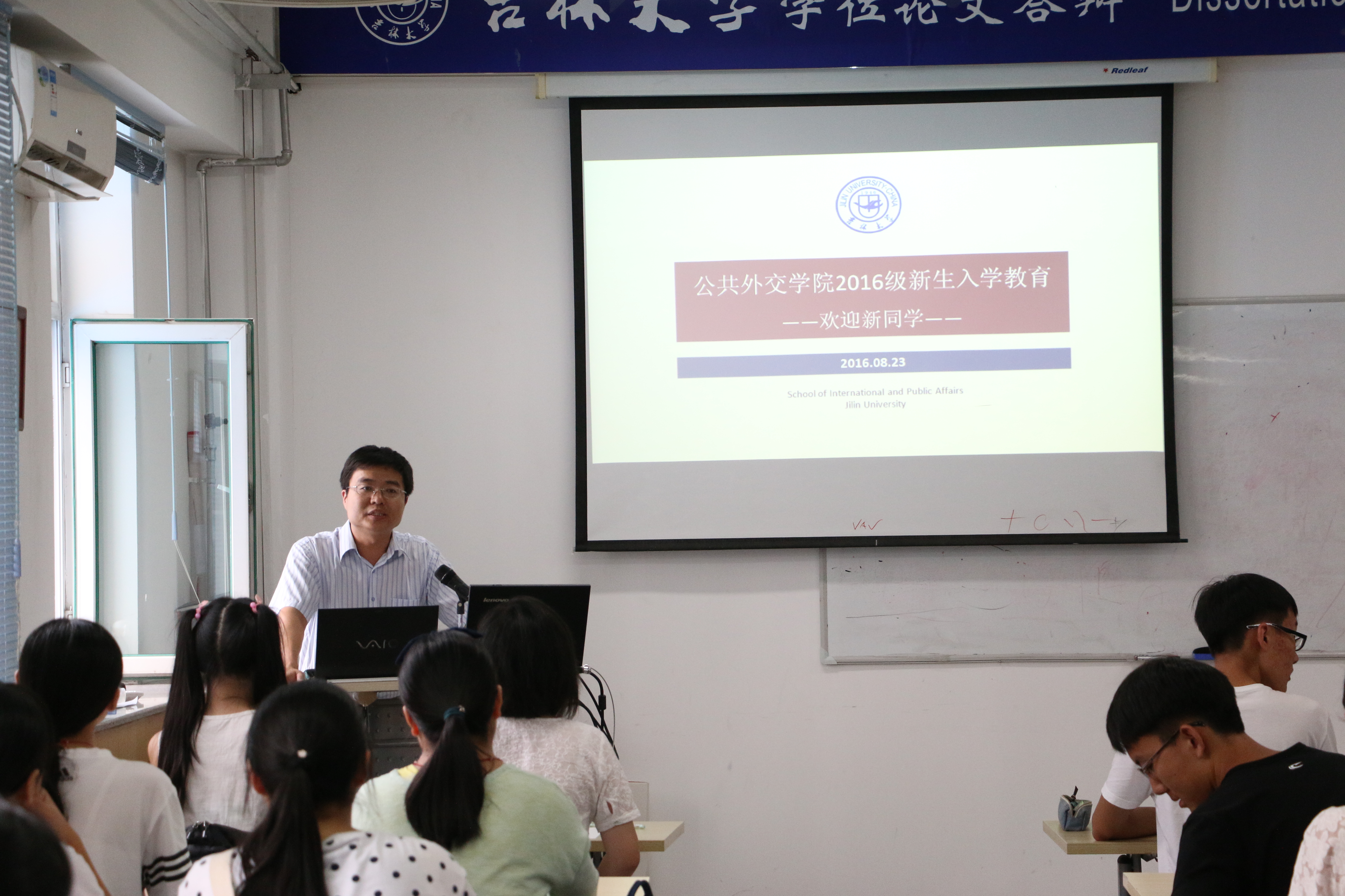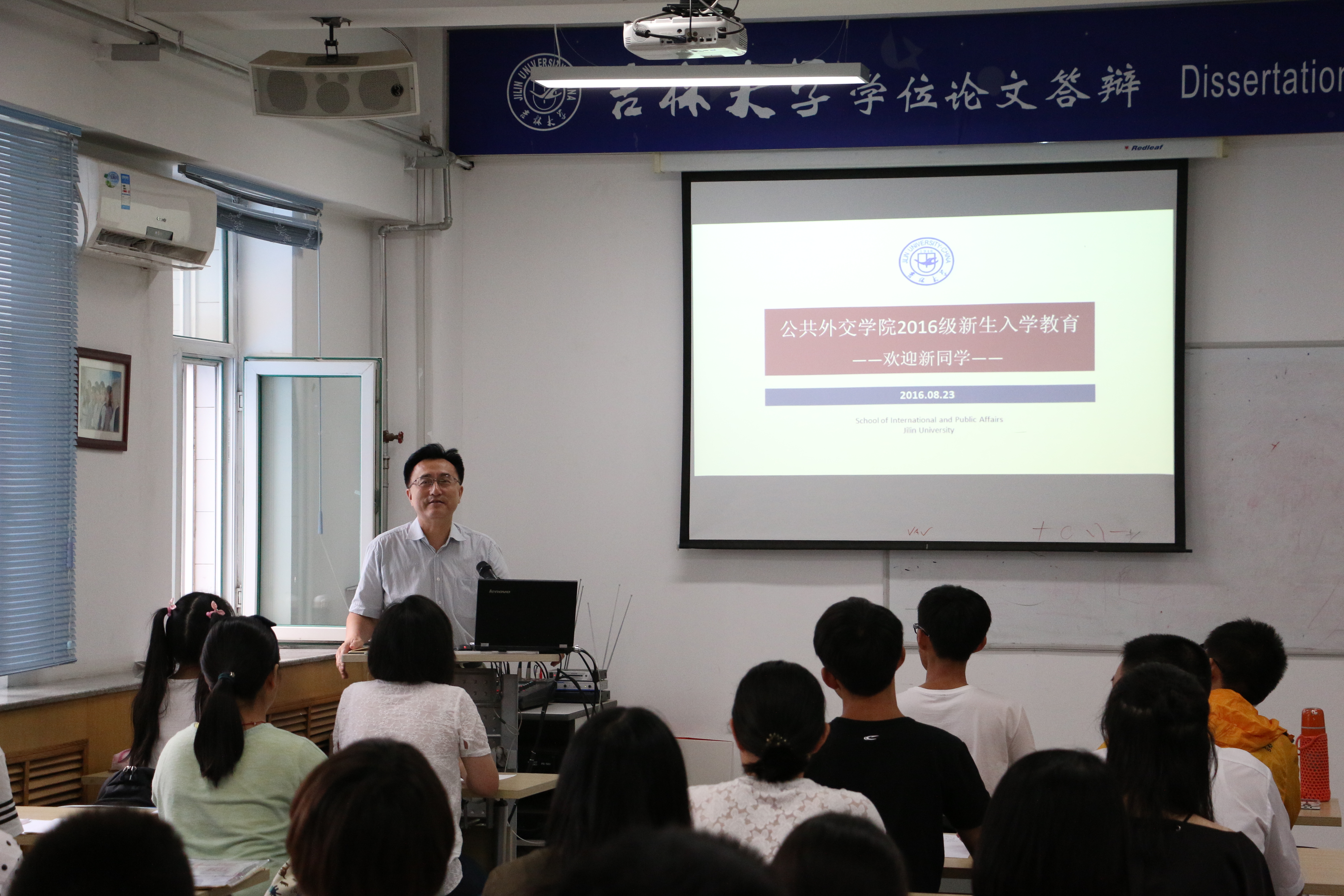 刘德斌院长、王秋彬副院长在友谊会馆小报告厅面向2016级外交学本科、硕士研究生新生开展了专业教育以及爱校荣校、学风、校规校纪教育讲座。