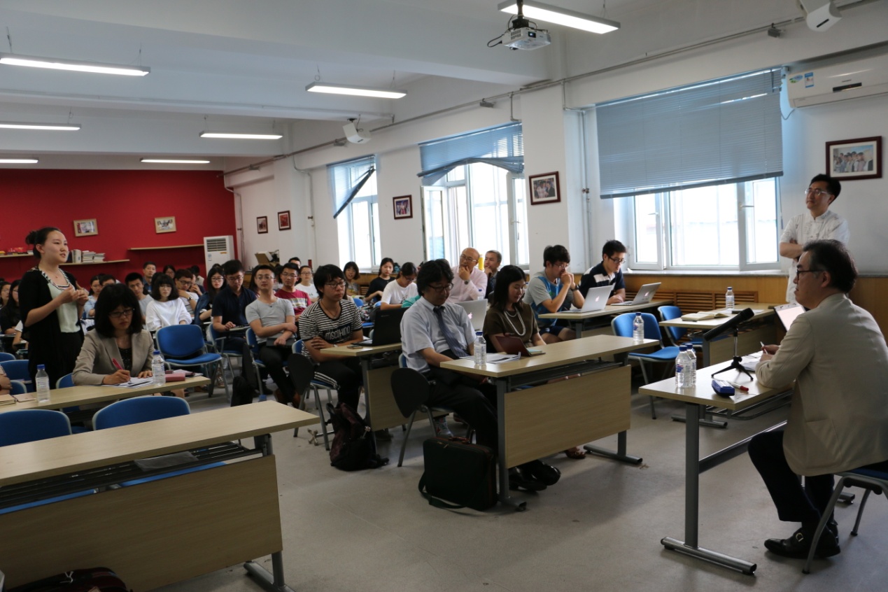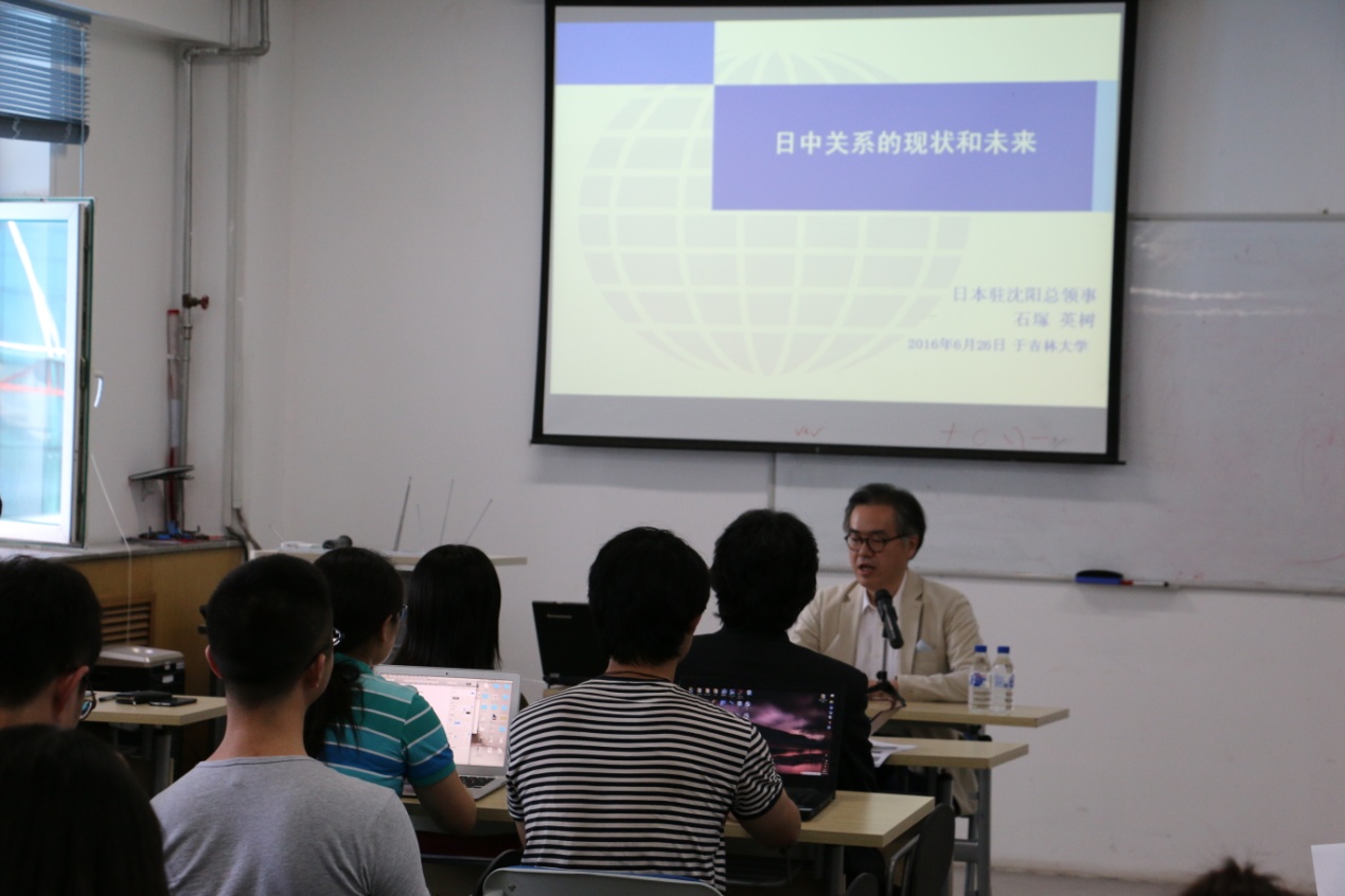 师生做题为“日中关系的现状和未来”的主题报告。石塚英树先生以中日两国交流的历史为切入点,梳理了中日交流的过去和现在,并展望了两国今后的外交关系。石塚英树先生表示中日两国之间有着无法切断的联系,并且这种关系日益紧密。虽然中日关系的发展有过争论,但应该向着能够成熟对话的关系发展。在今后的交往中,中日两国可以合作开展的课题很多,发展空间很大。2017年是中日恢复邦交正常化的第45周年,2018年是和平友好条约缔结的第40周年。石塚英树先生还表示明年希望能够进一步加强区域间交流,并以此为契机,构筑面向未来的中日关系。