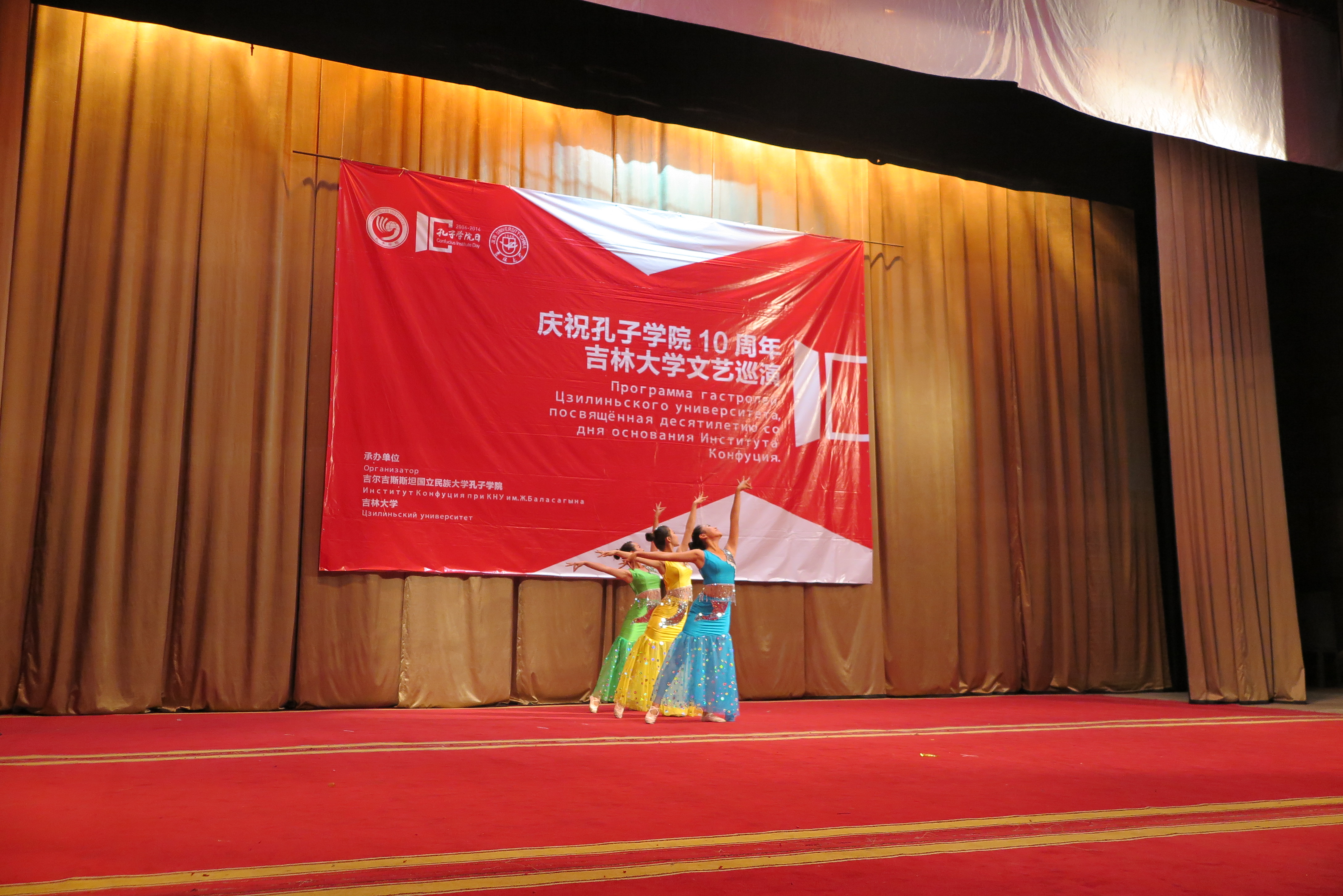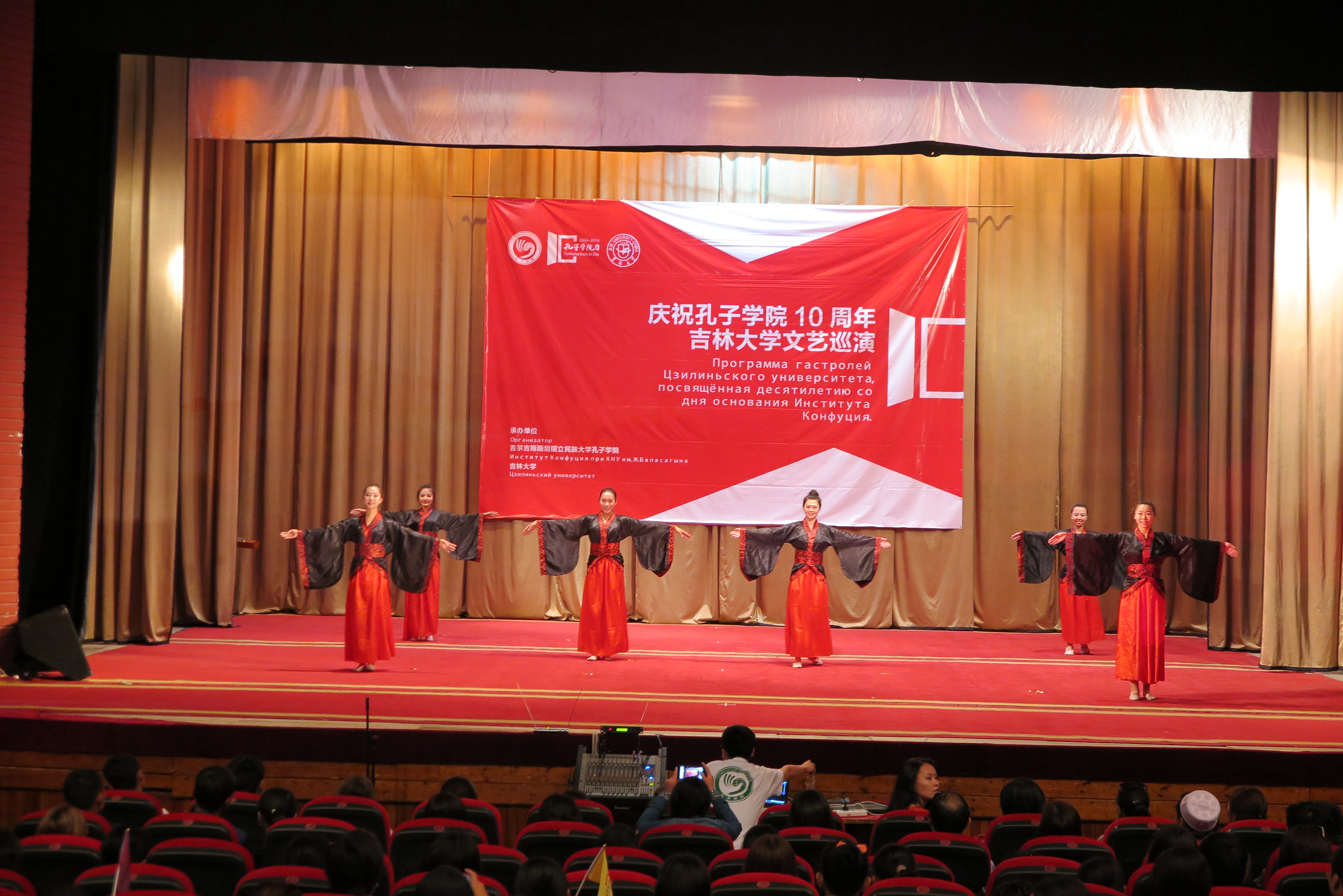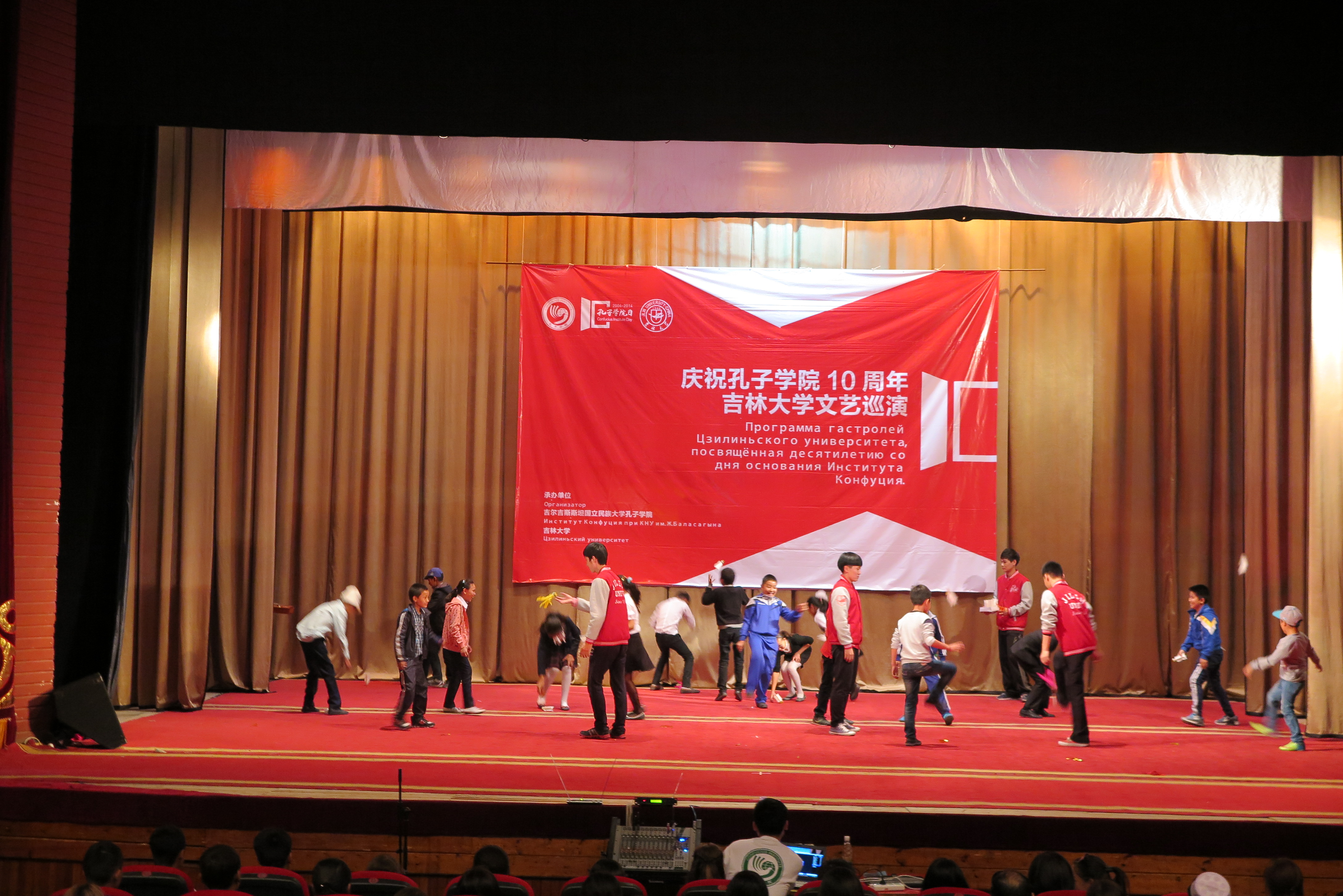 巡演团一行19人,在校团委书记姚毓春带领下圆满完成了哈萨克斯坦两场演出之后,于9月25日到达吉尔吉斯斯坦,首先在吉尔吉斯斯坦人文大学孔子学院进行了巡演的第三场演出,演出取得圆满成功,受到了人文大学师生的热烈欢迎。