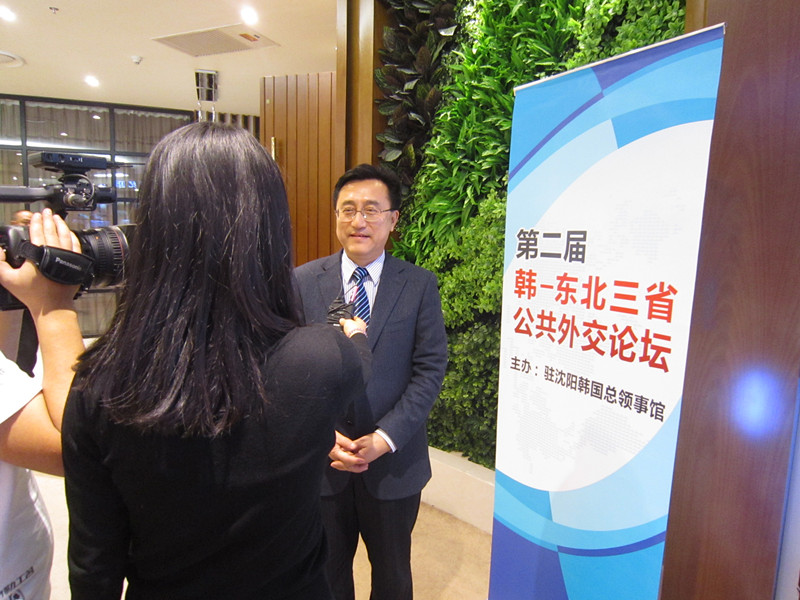 会议结束后,大连广播电视台、韩国中央日报记者等就中韩两国公共外交的必要性及日后发展的趋势等问题采访了刘德斌教授。