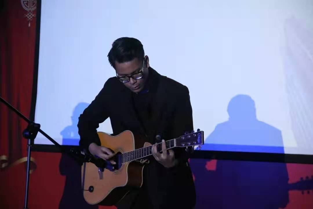 丁思然,王妍和化学学院特邀嘉宾杨博珵等同学带来的吉他弹唱《旖旎冬月》带我们进入了静谧醉人的世界。期待的都能得到,失去的都能释怀,愿世间的所有美好,与你环环相扣。