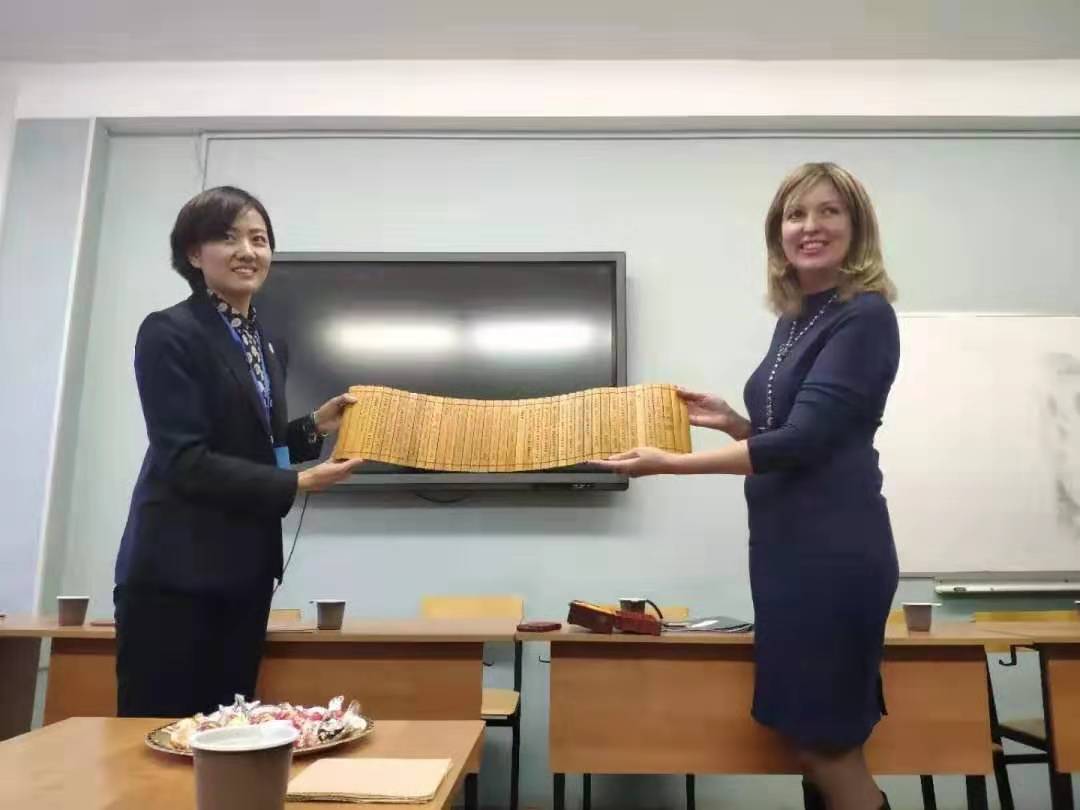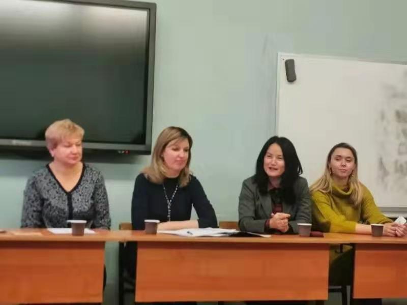 师生代表团应邀访问莫斯科国立大学世界政治系,莫斯科国立大学世界政治系于捷教授、青年教师卡佳出席了此次会晤,世界政治系主管国际合作工作的副主任娜塔莉亚出席并主持。