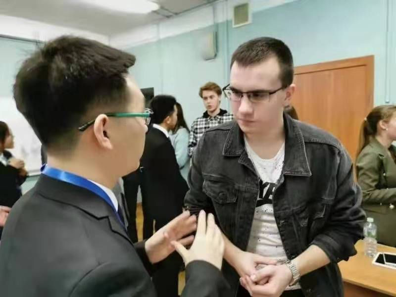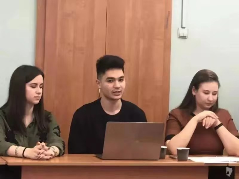 学生进行探讨,刘治辰、胡帅等同学从不同的角度对此进行了解答。张词含、李峥榕等同学也提问向对方了解世界政治系在招收国际学生、推动青年交流方面的具体措施,卡佳老师及娜塔莉娅主任回答了学生们关心的问题,世界政治系的学生们谈了自己的感受。双方师生就中俄两国能源合作、媒体网络对于塑造中俄两国形象、汉语教育在俄罗斯大学发展情况、莫大国际组织人才培养经验等多方面展开了深入交流。