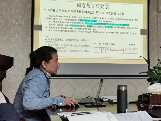 本科生课程考核管理办法》中的相关规定向参会老师做了详细的讲解,主要包括期末考试命题的要求、监考人员守则、试卷评阅与复核、试卷分析、复核制度等。参会教师们针对具体规定进行了深入讨论,对完善课程考核相关工作流程提出了具体的意见和建议。大家表示将严格遵守学校和学院的规定,进一步提高考试出题及试卷管理工作质量。