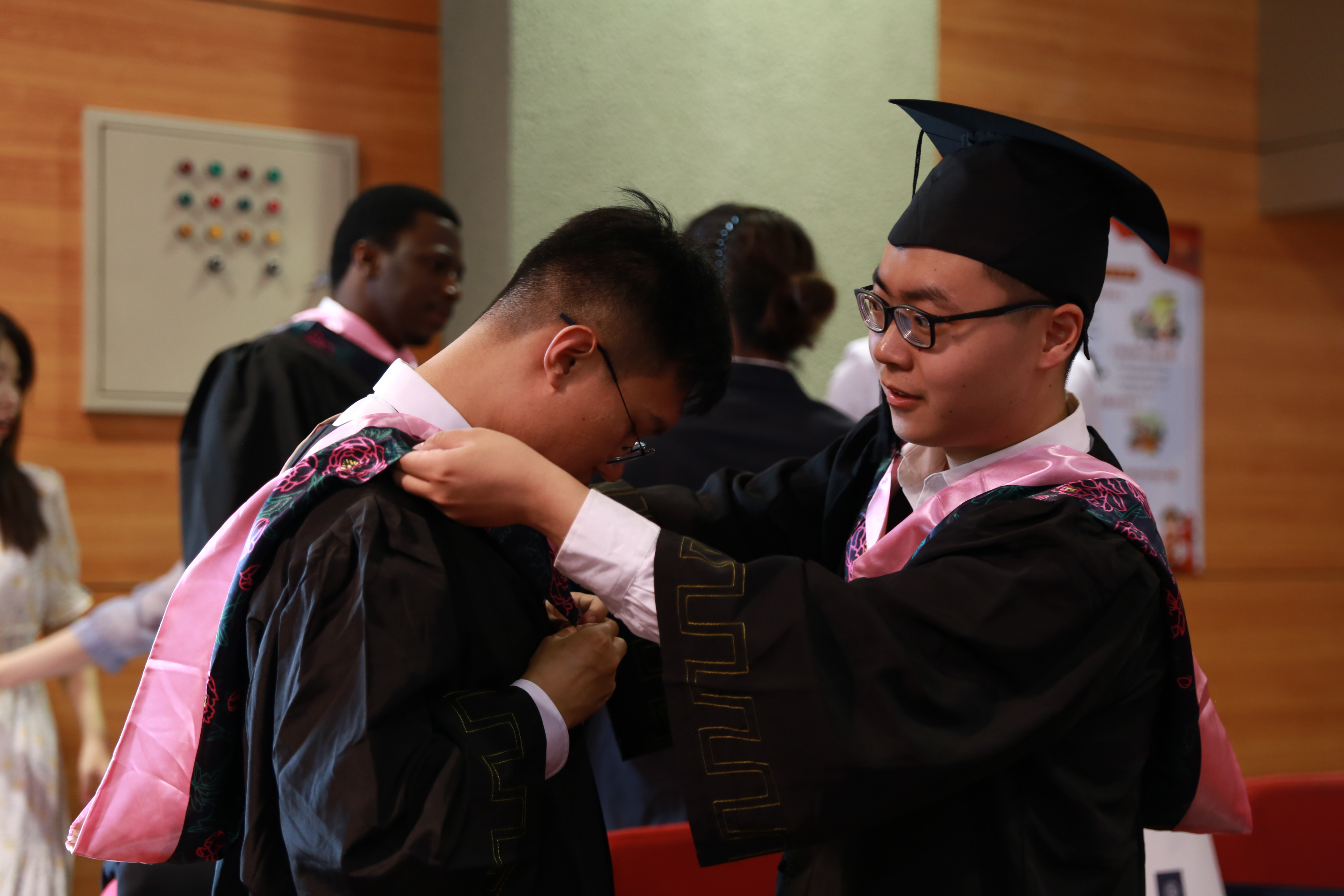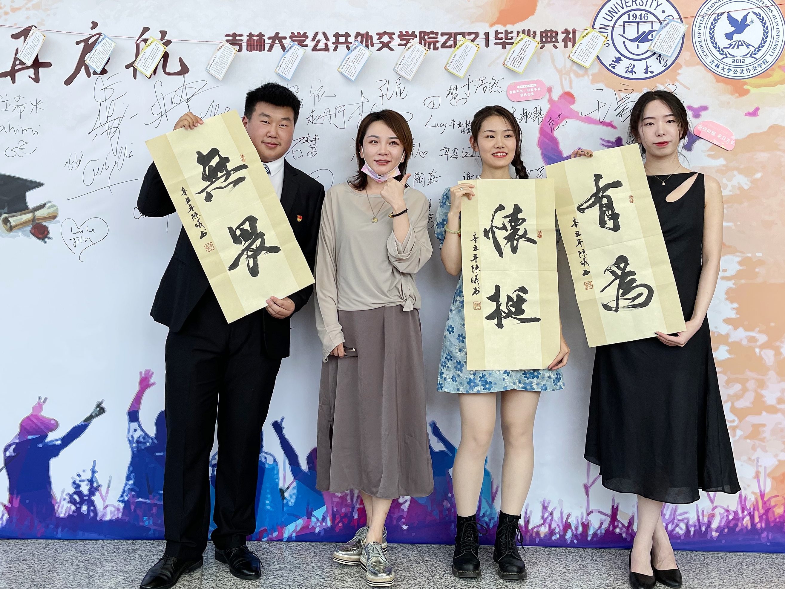 公共外交学院2021届毕业典礼,共同见证同学们的高光时刻。在此,请允许我代表杨民书记、代表全院教师向2021年毕业的37名本科生、13名硕士研究生和20名留学生致以最诚挚的祝福和最美好的祝愿!祝贺你们获得了专属自己的吉大戒指和外交小熊,祝贺你们将名字永远烙印在吉大的学位证书上!