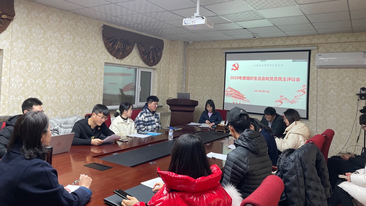 学生党支部于2021年3月16日中午在行政楼217会议室,召开2020年度组织生活会暨民主评议党员工作。会议由党支部书记张淑艳同志主持,院党总支书记杨民出席了此次会议。