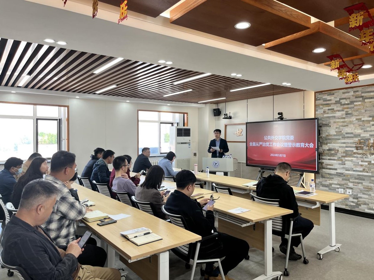 在吕振羽楼818会议室召开全面从严治党工作会议暨警示教育大会,学院领导班子全体成员、纪委委员及全体教职工参加了会议。会议由党委副书记兼副院长、纪委书记王力同志主持。