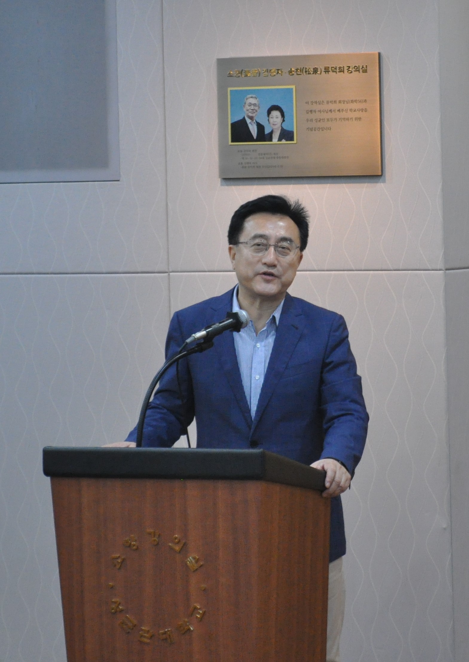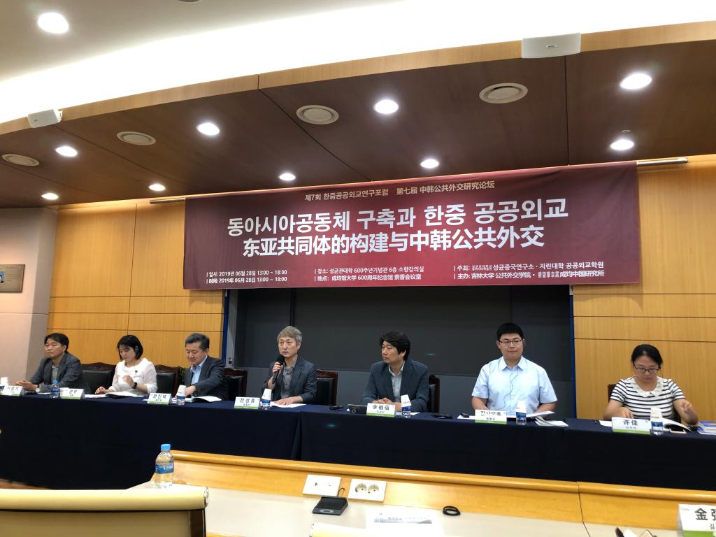 、延边大学、韩国成均馆大学、西江大学、济州和平研究院、统一研究院和世宗大学等高等学校的数十位学者参与。成均馆大学成均中国研究所所长李熙玉教授和刘德斌教授先后在开幕式致辞并发表主题演讲。李熙玉教授的主题演讲题目是“东北亚共同体构建与韩中关系”。他在演讲中分析了美韩关系、中美关系以及科技发展等对东北亚共同体建设的影响,指出国家间要超越“修昔底德陷阱”和“金德尔伯格陷阱”,公共外交在东北亚国际关系和共同体中发挥着重要作用。刘德斌教授主题演讲的题目是“中美关系的变化与东北亚共同体的构建”。他在演讲中分析了近年来中美关系发生“实质性”变化的原因及其给东北亚局势带来的复杂影响,特别是给韩国外交和东北亚共同体建设带来的新的挑战,指出韩国利益的最大化在于如何在中美之间发挥桥梁和纽带作用,并认为美国内政外交的“蜕变”为中韩合作和东北亚共同体建设中增加了新的现实意义。