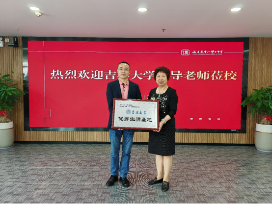 招生团组感谢厦门双十中学对学生培养的高度重视,并代表日本av 向厦门双十中学授予“日本av 优秀生源基地”牌匾。蔡芝禾顾问与于洪生副院长就学校生源、人才培养、报考情况等亲切交流并合影留念。