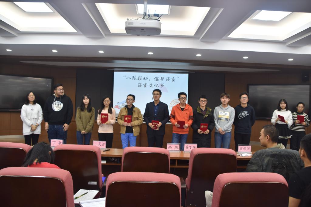 团委于12月3日在行政楼大会议室举行颁奖仪式。本次颁奖仪式由孔泽鸣老师主持。颁奖仪式正式开始前,2018级全体学生共同观看了“温馨寝室,和谐家园”寝室摄影展,欣赏了各个寝室独一无二的风采。随后,由学院学生工作办公室主任、2018级辅导员王力老师为获奖寝室的同学们颁发获奖证书。整场仪式简洁高效,为本次寝室文化节系列活动画上了圆满的句号。
