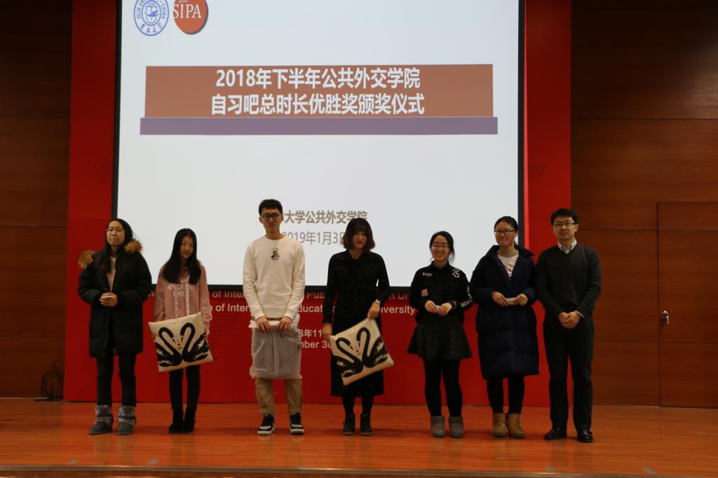 "一起自习吧"活动自习总时长优胜奖获的颁奖活动在南区中心图书馆西侧报告厅举行,刘治辰等六名同学获得相关奖项和礼品。学院学生办公室主任、2018级辅导员王力老师、博士兼职辅导员孔泽鸣参加本次活动。