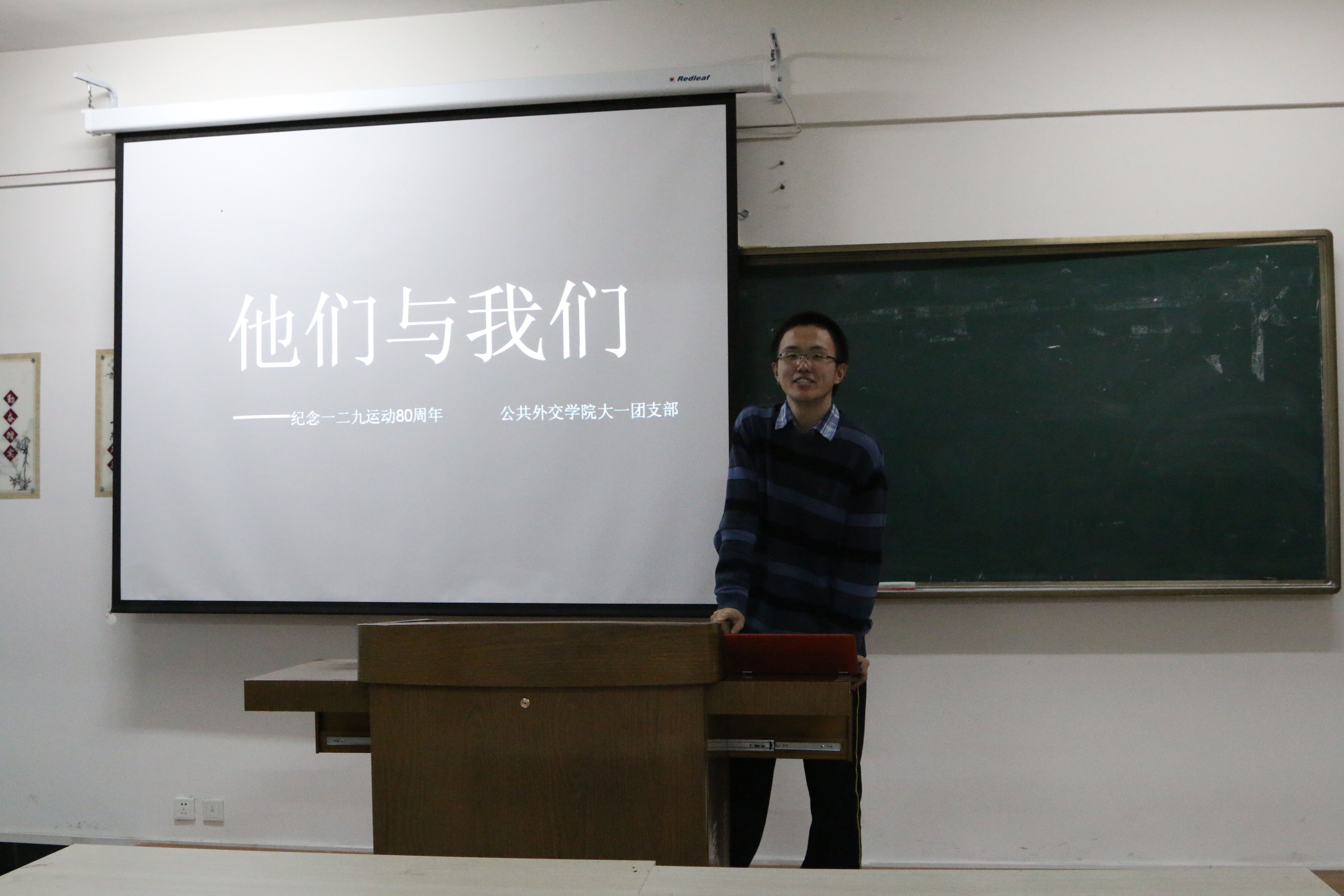 2015级本科生于经信教学楼一楼开展“他们与我们”——纪念一二九运动八十周年主题班会。本次活动由日本av