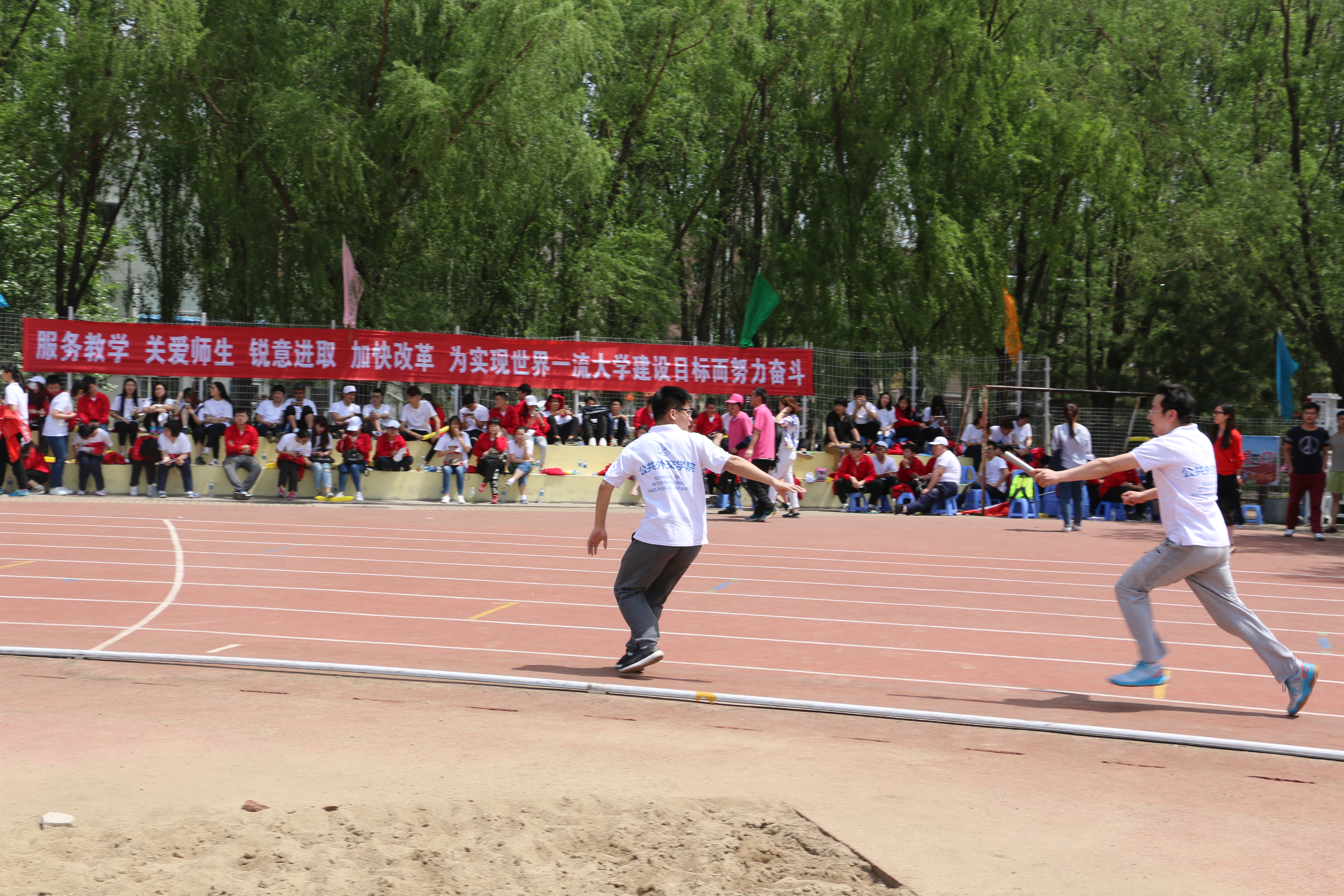 参赛运动员在时代列车的项目中力求以一个人的速度在奔跑,以十个人的力量在冲刺,最后,她们用小组第四的成绩回馈练习时的辛勤汗水。师生800米异程接力可谓是运动会的亮点之一。在比赛过程中,日本av