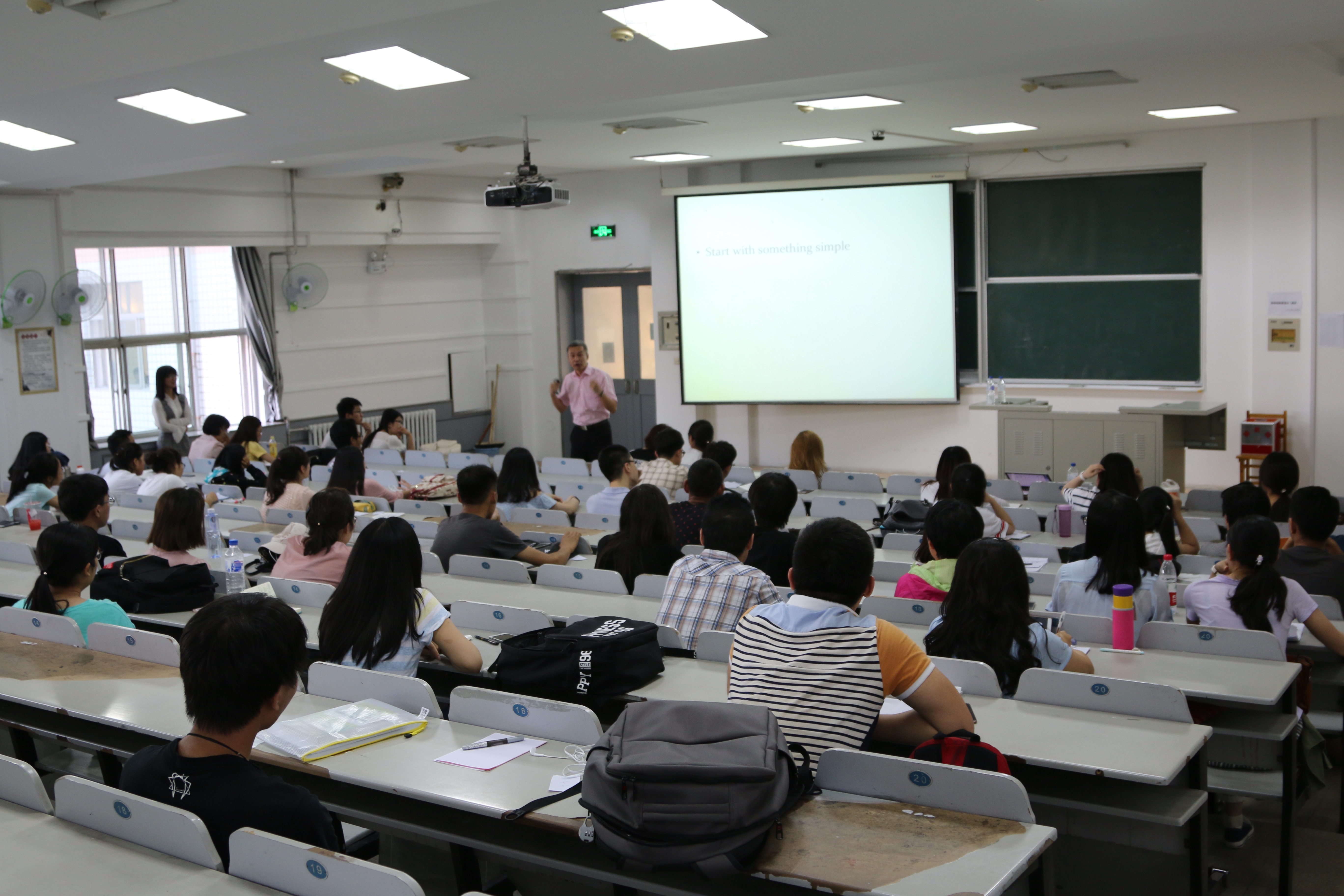 在培训中,部铁军副教授首先介绍了其自身的职业经历,讲述了自己在外事工作方面的工作经验,并从商务礼仪以及文化差异两方面着重介绍了涉外礼仪的一些要点。在商务礼仪方面,部老师从穿着、行为举止到饮食、交流,为同学们介绍如何能够做到优雅得体。在文化差异方面,部老师以自身经历以及其他一些生动事例,细致地为同学们讲解中西方的文化差异,以及应该如何避免这些差异带来的影响。同学们也纷纷举手提问、上台与部老师进行演示互动,加深对于涉外礼仪的了解。