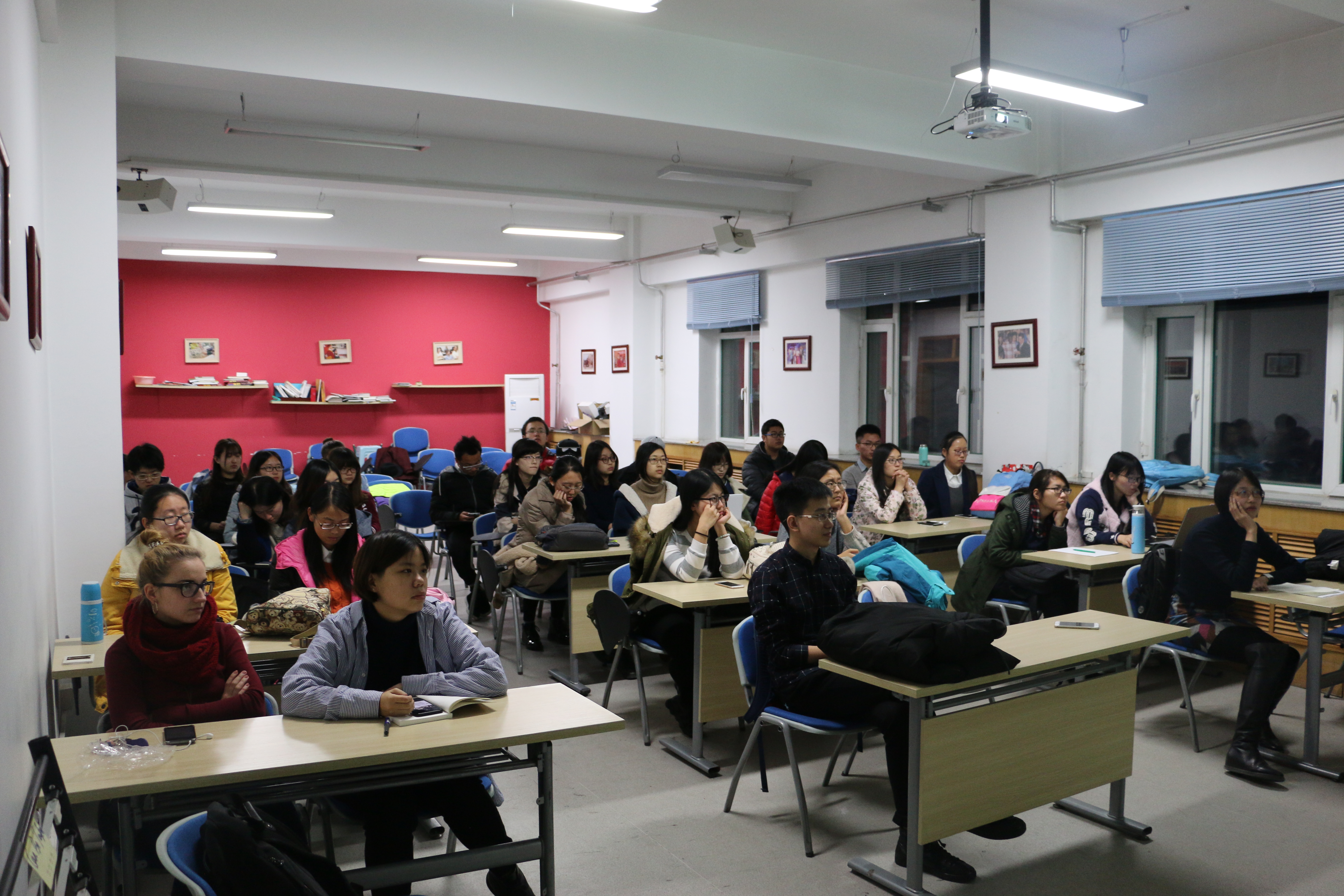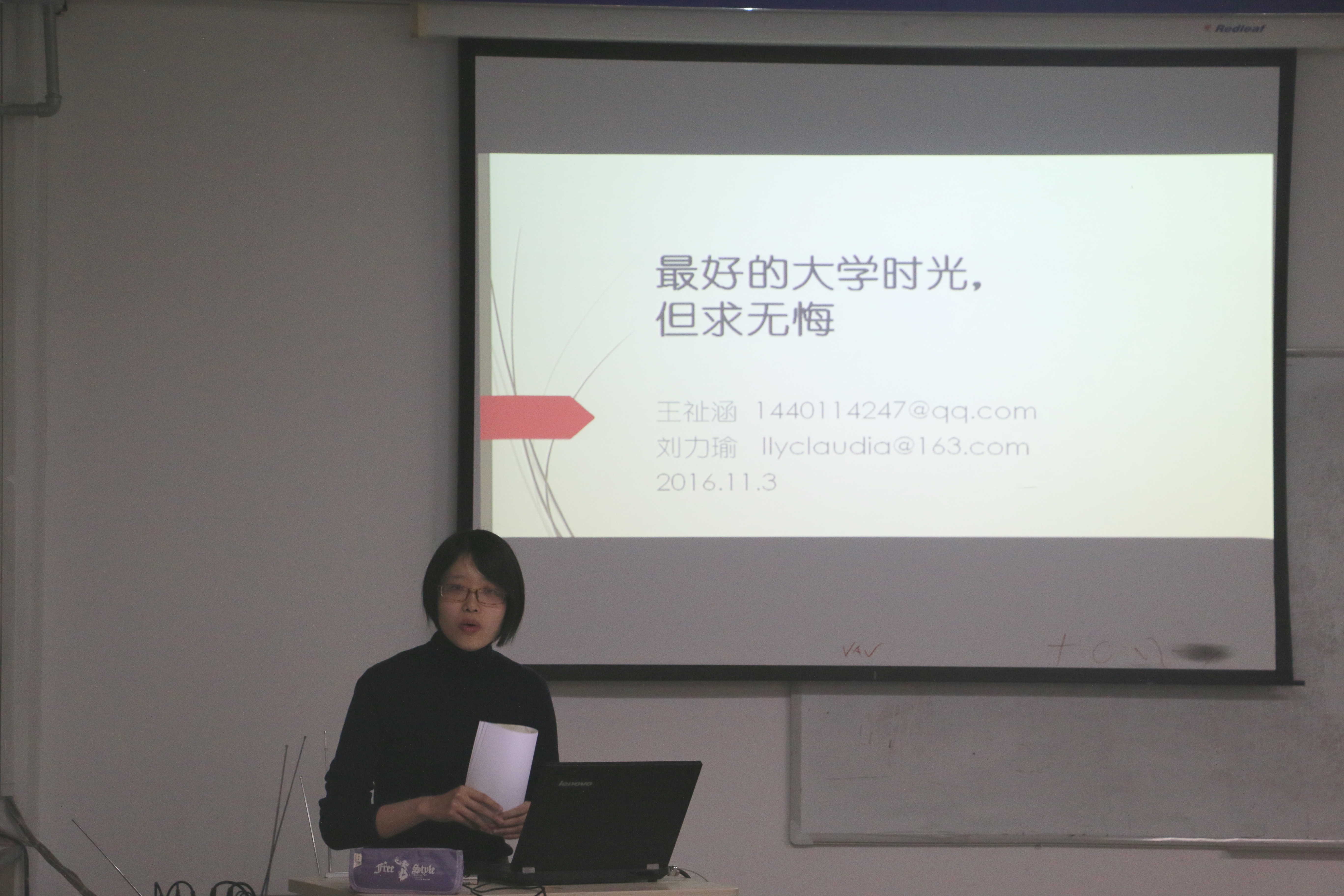 2015级全体同学以及班主任崔悦老师共同参加了“解学业困惑,明未来方向”班会,班会在友谊会馆小报告厅举行。班会上,崔老师特别请来了两位我校研究生--王祉涵和刘力瑜来为大家解答学习和生活中的种种困惑,并帮助同学们规划大学生活,明确未来方向。