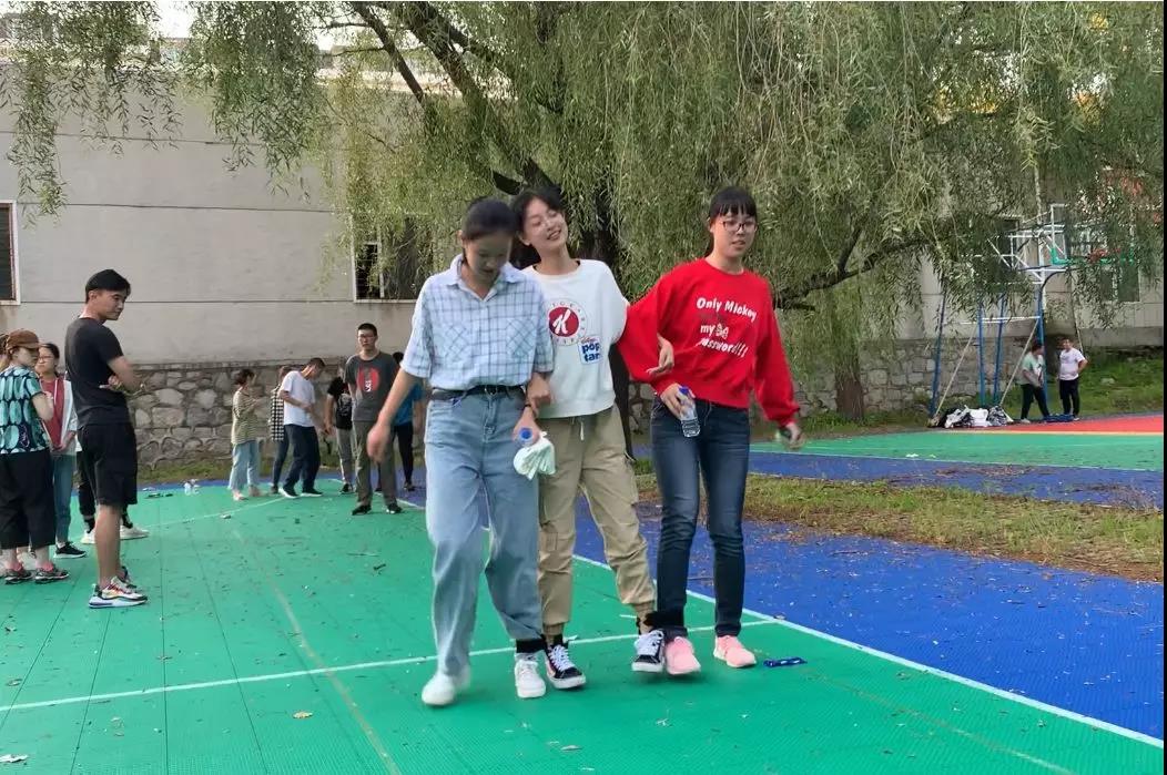 里丰富多态的学习生活方式,并播种下一朵朵梦想。接下来,迎来了学长学姐们精心准备的破冰闯关小游戏,看似简简单单的团队游戏,其中却饱含着学长学姐们的良苦用心。盲人过街,两人三足,背对背夹气球,套圈赢奖品……一系列活动让新同学之间从刚开始的羞涩少言变为最后的嬉笑打闹,因初识而产生的尴尬隔阂之冰在彼此的互动之中逐渐消融,原本陌生冷漠的面孔在协作之中逐渐鲜活而富有生气。暖色夕阳照耀下,正是青春当时。