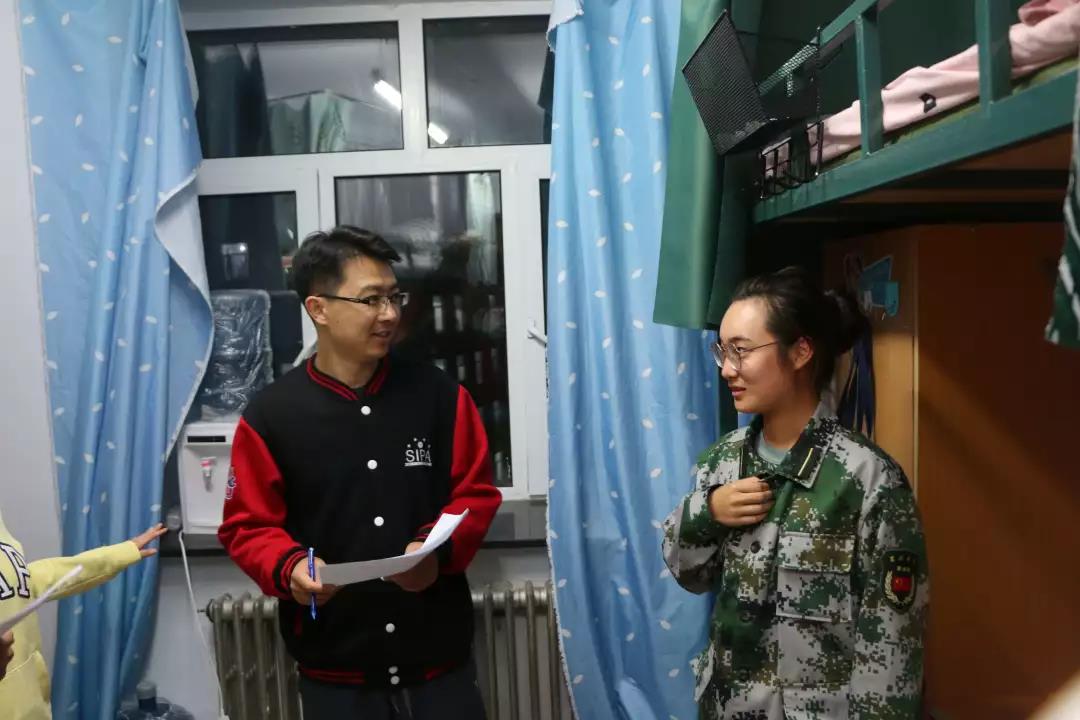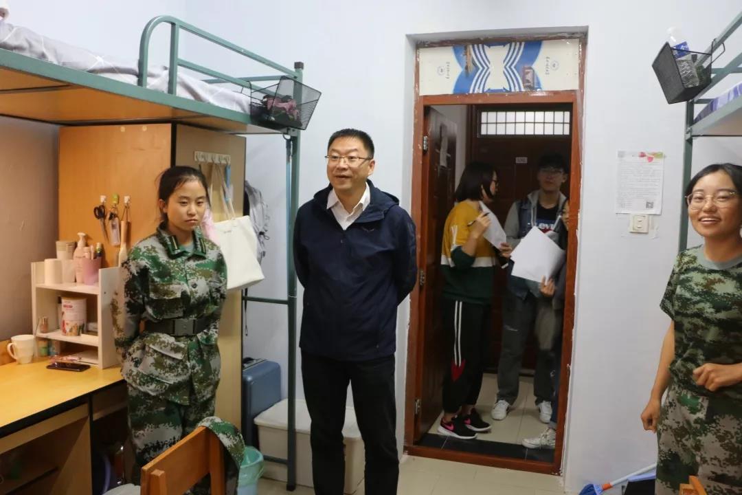 在检查与评分期间,杨民书记也就2019级新生的学习和生活情况与同学们进行了亲切的交谈。