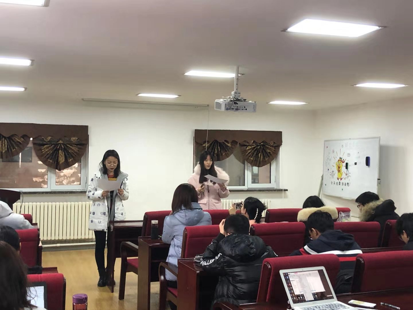 2018、2019年级大会在辅导员王力老师的主持下顺利开展。会上,王力老师就考试诚信问题、网络安全问题、寝室卫生问题、党员发展对象问题等做出了详尽的安排,并对近期学校、学院的相关安排进行了说明与解读。在王力老师的组织下,参会同学认真学习考试条例后,郑重地在诚信保证书上签下姓名,大家表示将身体力行,共建严肃考风。会上还完成了2018、2019两个年级关于2020年党员拟发展对象的民主测评工作。