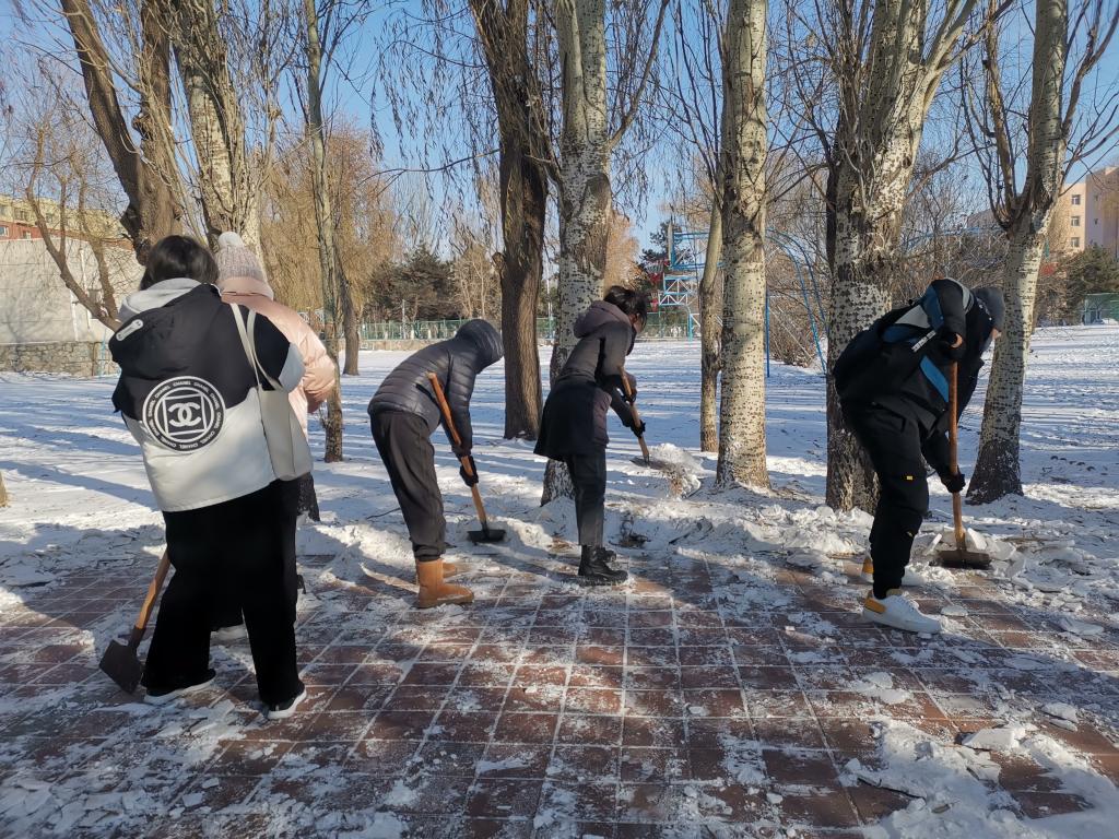 于11月23日中午组织党员和入党积极分子开展扫雪劳动教育活动。