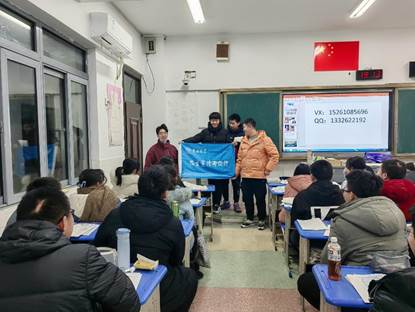 本科生田鹥带队参与了巴蜀中学线上宣讲活动,同时进入校园分发纸质宣讲材料,宣传受众达60余人。队员王文雨荻和李思璇则在线上对重庆第一中学的同学和家长进行了宣讲。