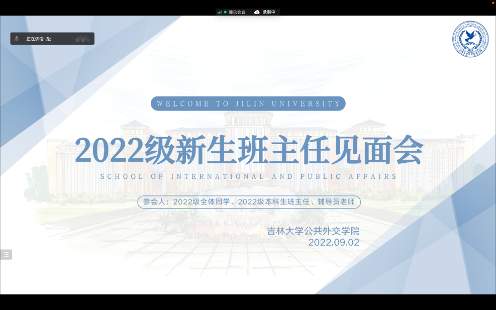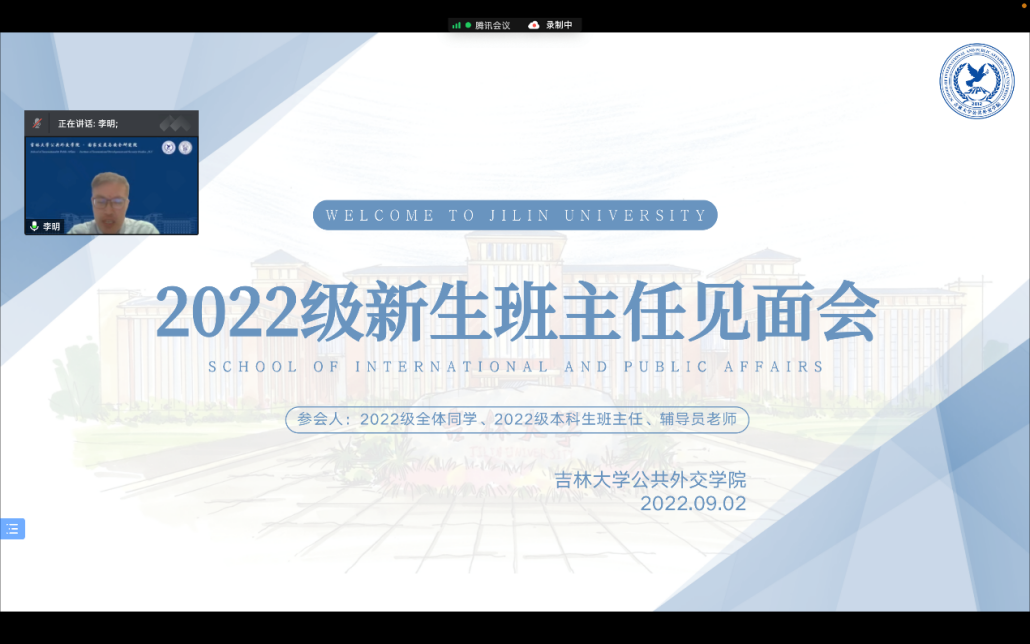 邹晓龙老师从“如何学习”“如何生活”“坚持自我”这三个方面向同学们提出了建设性意见。他指出,大学生活具有很强的自主性,希望同学们能充分发挥吉大这一优质平台的资源优势,结合时代发展与变化,合理规划每一阶段的目标,充分发挥主观能动性,将小我融入大我,有力诠释“世界眼光,家国情怀”的办学理念。接着邹老师鼓励同学们要多经历,多体验,多感受,“读万卷书,行万里路”,学会主动适应环境,注重自身的身心健康,并提醒同学们要注重礼仪,成为一名有素养的外交人。最后,邹老师强调需要坚持自身选择,大胆走好自己的人生道路。