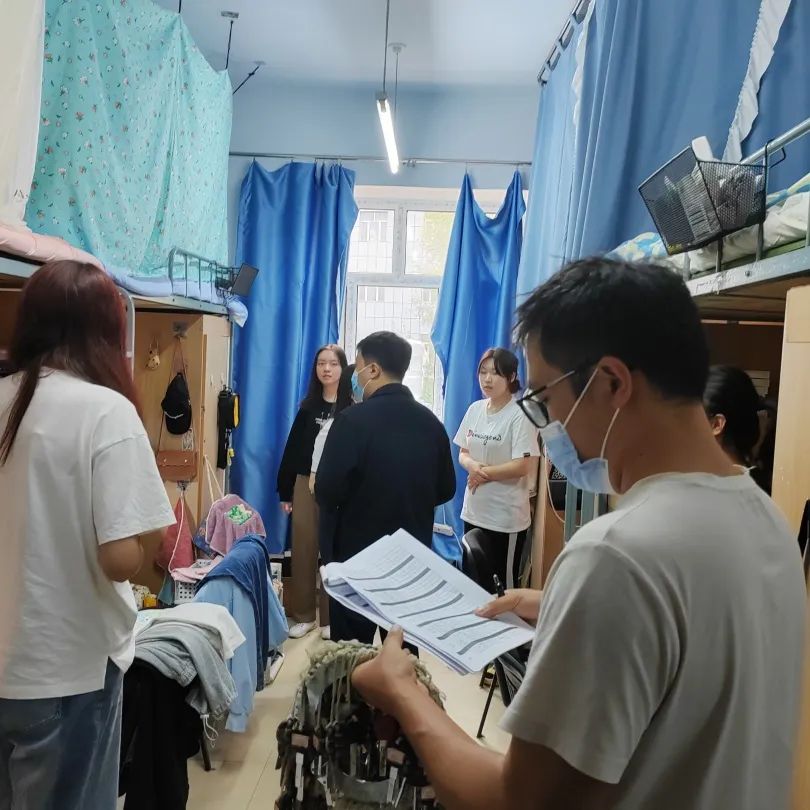 此次检查的学生寝室总体情况良好,无不合格寝室。在本次走访的过程中,各位老师与同学们进行了友好愉快地交流,老师亲切地关心并询问同学们新学期的生活情况与学习规划,悉心叮嘱大家注意近期的天气变化、及时增添衣物,加强身体锻炼,注意个人防护等。另外,老师们特别提醒同学们在节前及国庆放假期间注意寝室卫生和用电安全,并希望同学们能够严格自觉遵守安全用电规则,共同保障寝室安全。
