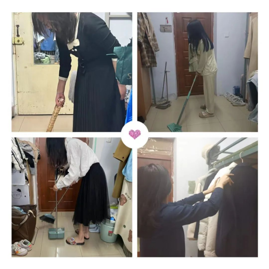 静为宿舍之本,雅集宿舍之美,谐博宿舍之爱。同学们在寝室长的带领下积极投身寝室清扫活动,纷纷化身“收纳小能手”,首先对自己的床铺和桌面进行了整理。随后,各寝室内的成员分工协作,大家主动拿起扫帚和拖布,打扫寝室内的公共区域,并擦拭了柜子和窗台的灰尘和污垢,使寝室变得窗明几净。在大家的共同努力下,寝室环境焕然一新。