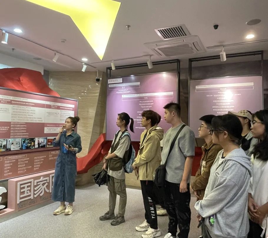 在讲解员的指引下,同学们首先来到展厅前言部分,开启观展之旅。同学们首先参观了校歌厅,了解了校歌的创造背景和寓意,明白了校歌对学校文化传承的重要意义。