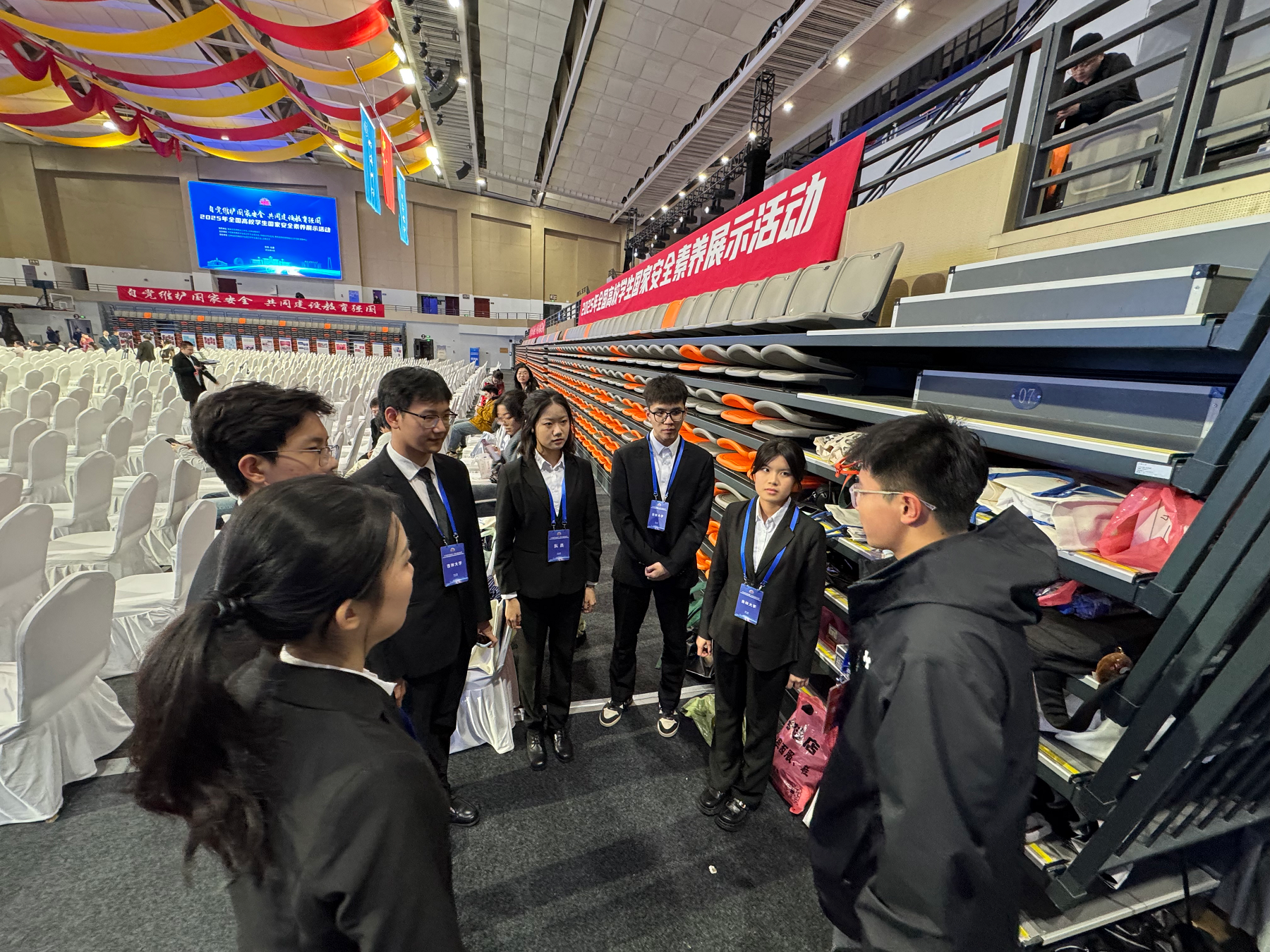 本科生黄荣禹、周炜佳、阮子涵、陈贤俊、赵晨宇、郭俊伯6名同学组成。自组队以来,队员们便开启了高强度的备赛模式,根据赛制,从国家安全基础知识、国家安全公开课、辩论赛三个方面展开紧张而有序的筹备。