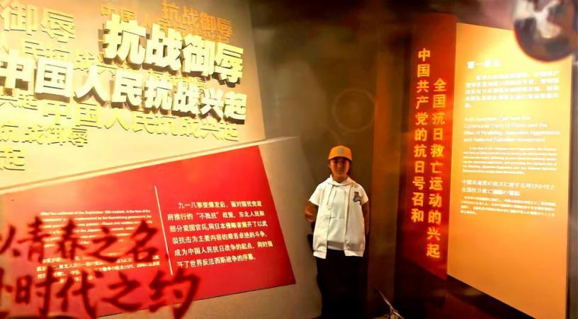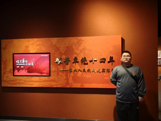 推开陈列馆的门,仿佛跌进了一段凝固的时光。泛黄的家书皱巴巴地蜷缩在展柜里,模糊的字迹像是未说完的牵挂;开裂的军靴结着冰霜般的裂痕,仿佛还在诉说着雪地里的跋涉。多媒体影像中,同胞被驱赶的身影、日军狰狞的面容,像重锤般一下下砸在心上。走出展馆,我更加明白,今日安宁是先辈用生命换来的,吾辈当铭记历史,奋勇前行。